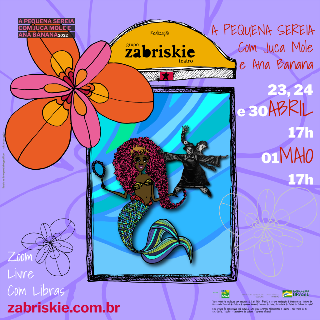A Pequena Sereia com Juca Mole e Ana Banana está em consonância com os demais títulos do repertório do Grupo Zabriskie, que sempre se mostrou engajado no exercício de sua função social, no resgate do afeto e na curiosidade sobre novas possibilidades poéticas e transformadoras do tempo em que vivemos.