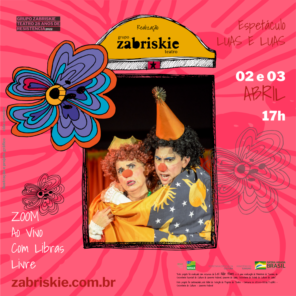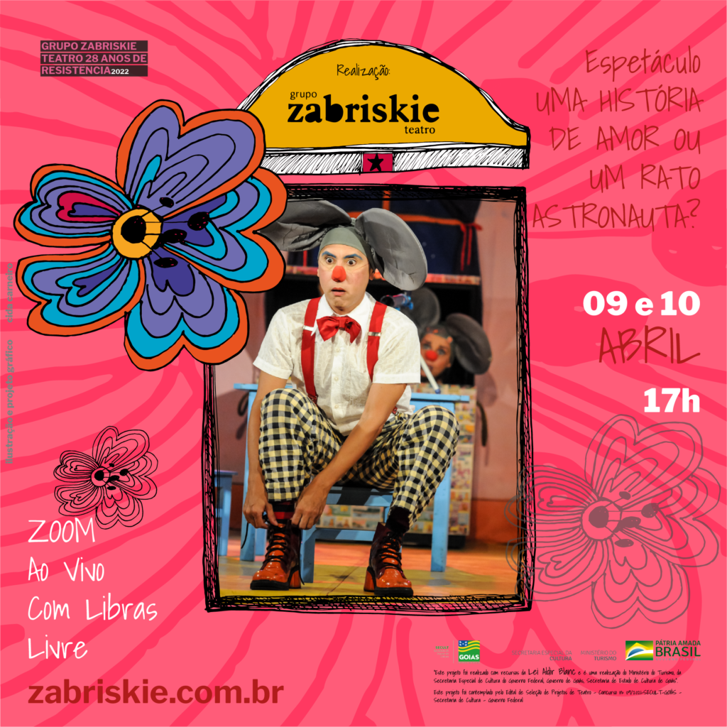 Serão apresentados dois títulos do repertório de espetáculos teatrais do Grupo Zabriskie Teatro: Luas e Luas e Uma História de Amor Ou Um Rato Astronauta? Os dois espetáculos foram adequados ao modo online com muito sucesso em apresentações online no ano passado, tendo tido um retorno muito favorável por parte do público presente às sessões. Será utilizada a plataforma do aplicativo Zoom em tempo real, ao vivo, visando à interatividade com a plateia. Interatividade esta que é uma tônica característica do trabalho dos integrantes do elenco que buscam o resgate do afeto nas suas relações com o público.